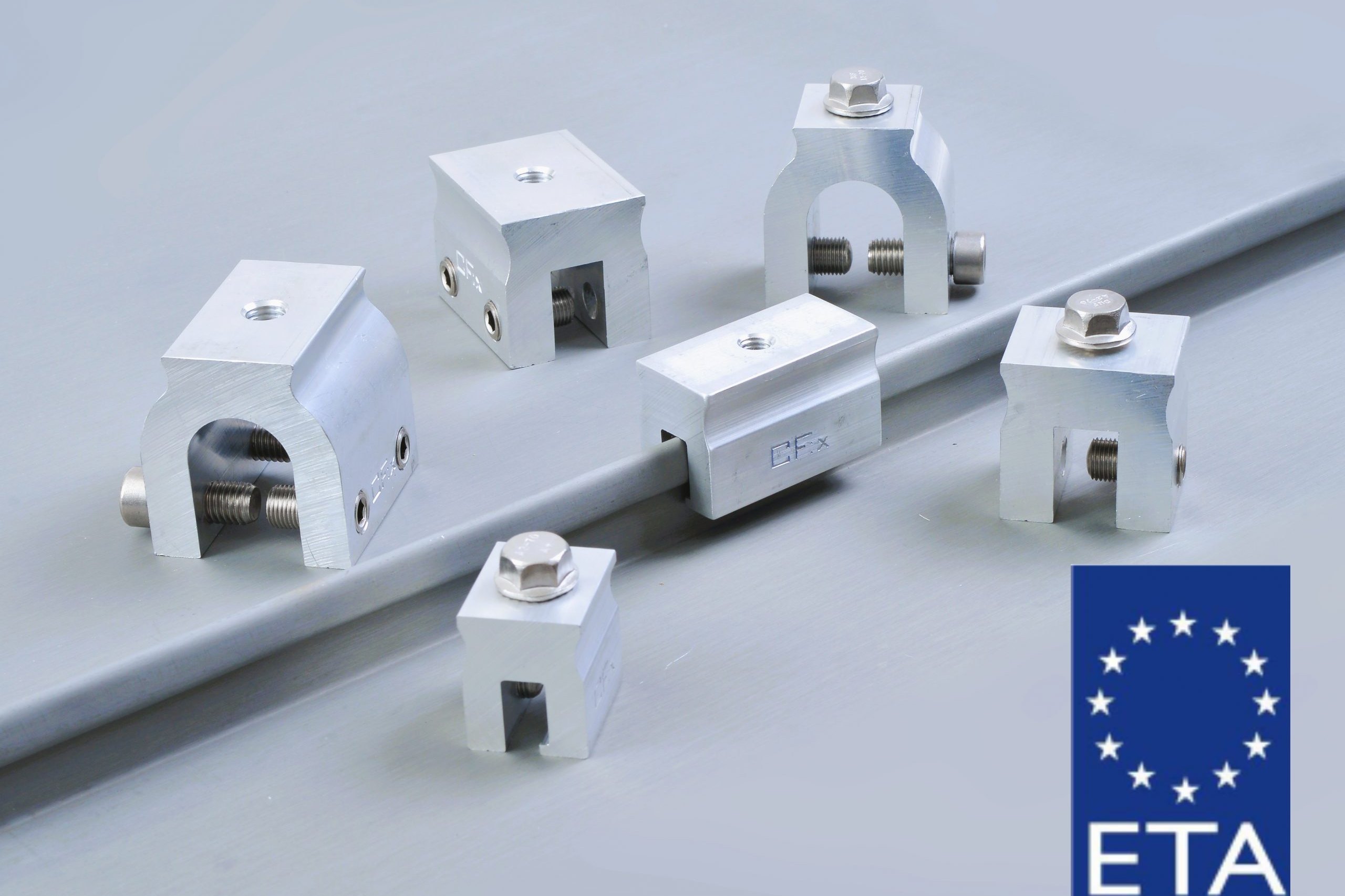 Sechs Klemmentypen in verschiedenen Varianten für alle Installationen von Solar- und Photovoltaik, Dachbegehungssystemen und mehr, vorbereitet für eine schnelle Montage vor Ort.